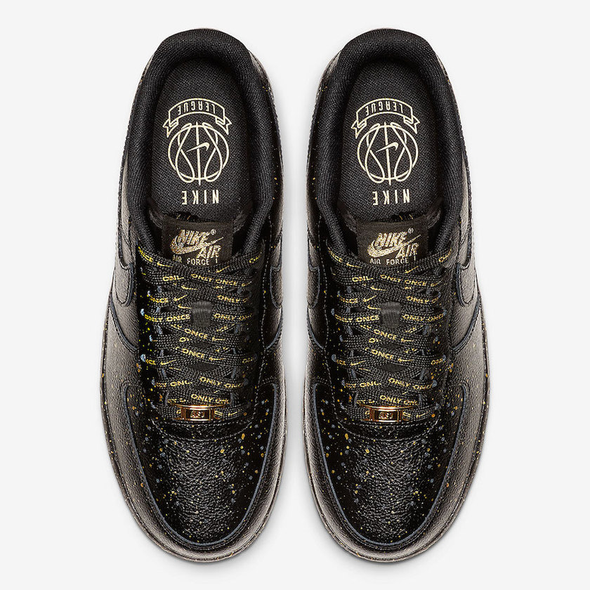 在前几周我们曾为大家报道过一双白红装扮的耐克高中联赛专属配色Air Force 1,同时在二级市场中价格合理让不少人都会去选择购买。而最近耐克高中联赛在如火如荼地进行当中,Nike也是再次释出一款全新的耐高联赛配色。此次鞋身以黑色为主与此前的白色系形成反差,另外在整个鞋身都加入金色的泼墨元素,各细节也都采用金色点缀。鞋带则依旧印制这ONLY ONCE的字样。