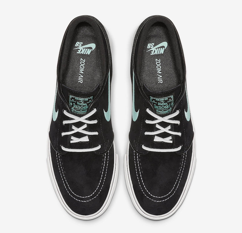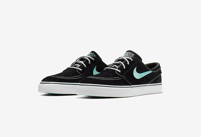 前几日我们曾为大家报道过一款Nike为旗下职业滑板运动员Stefan Janoski 推出的全新签名鞋款 Zoom SB “Stefan Janoski”。很快地网络上又曝光了这双鞋的另一款全新配色。鞋身整体都以黑色为主,并配以麂皮材质呈现,在鞋舌、鞋垫细节以及鞋身两侧的Swoosh则使用了亮眼的湖水绿展现。色系的搭配潮流感满满。