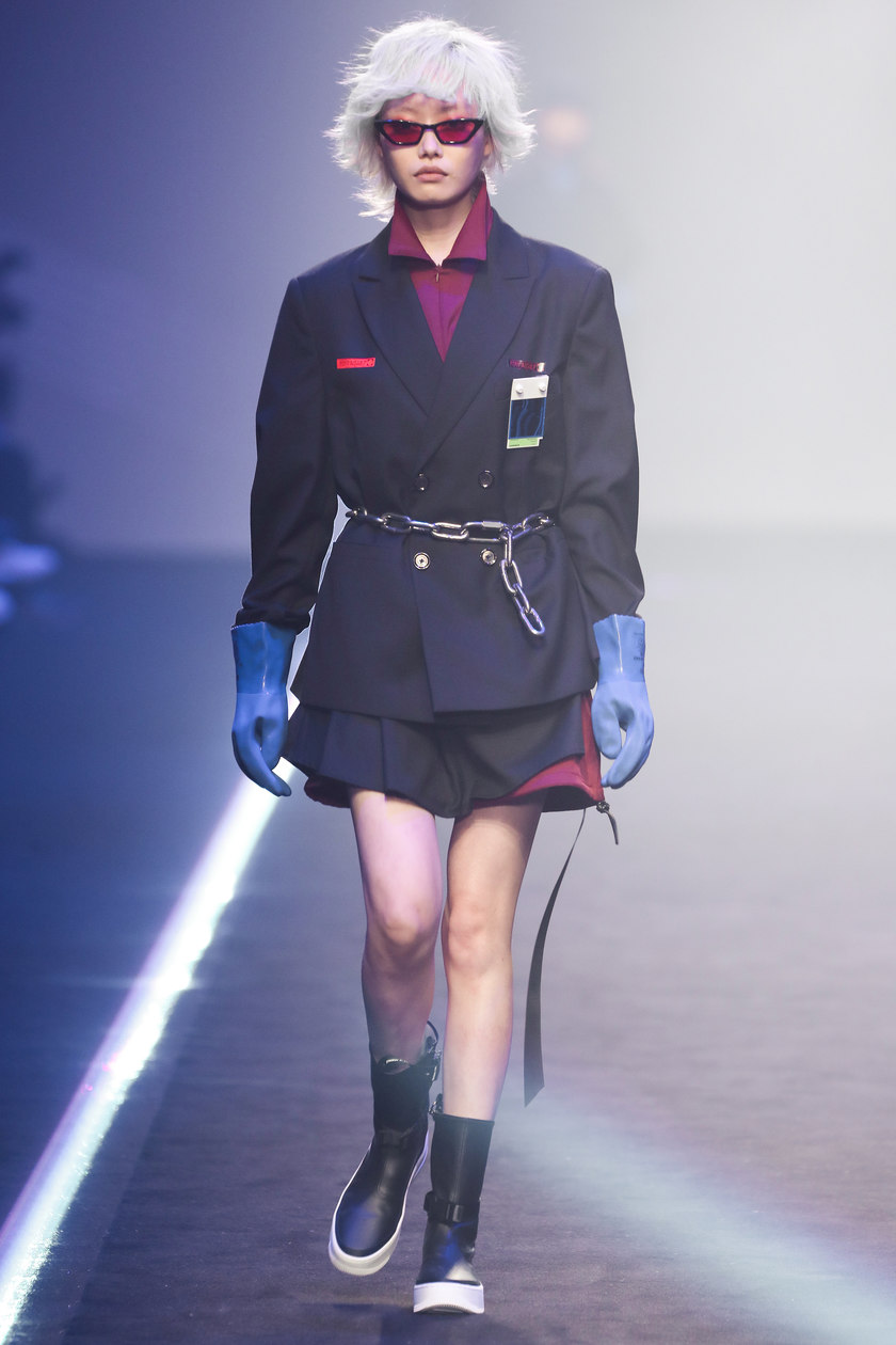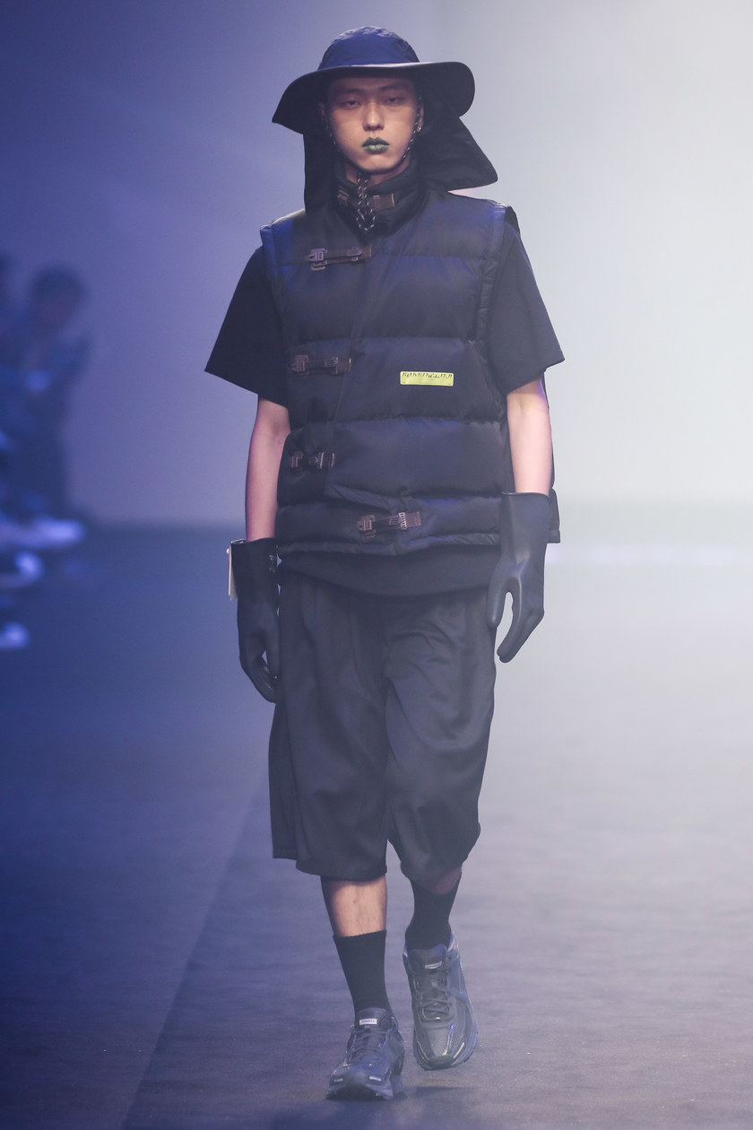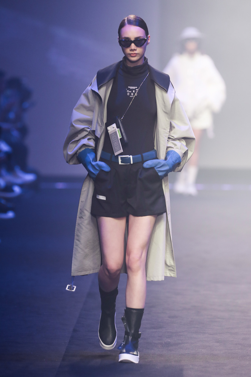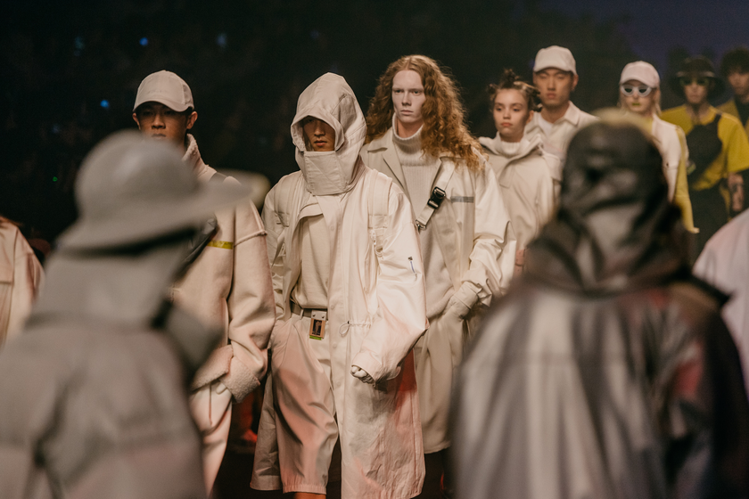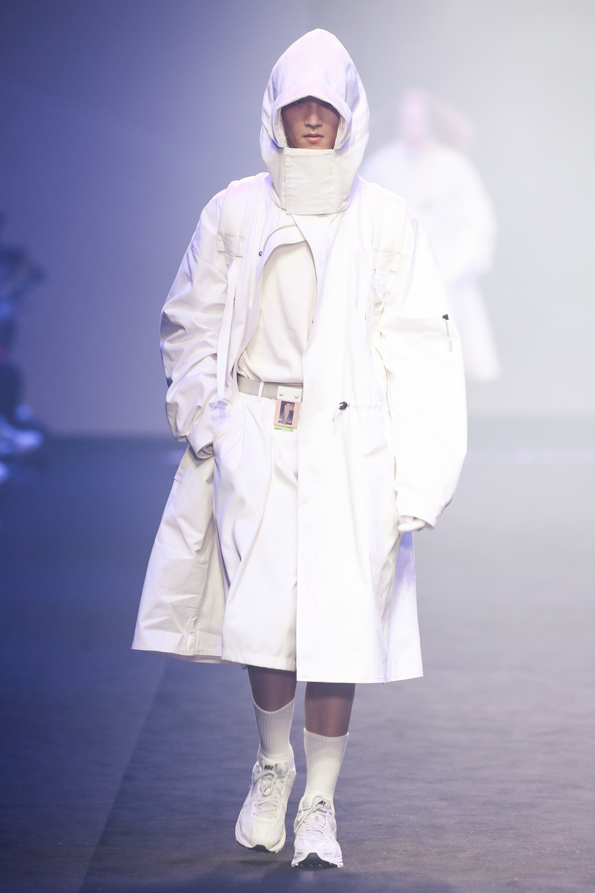 当天,ROARINGWILD不但向前来看秀的观众展示了亮色系西装、强廓形感军事外套、反光羽绒服、伞兵包等2019秋/冬季的优秀产品,也试图幻想一个截然丌同的环境氛围。视觉上以怪诞迷幻的激光影像,在扭曲形变下烘托秀场氛围,带给观众一个充满虚幻绮丽的视觉体验观感。