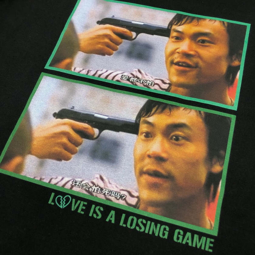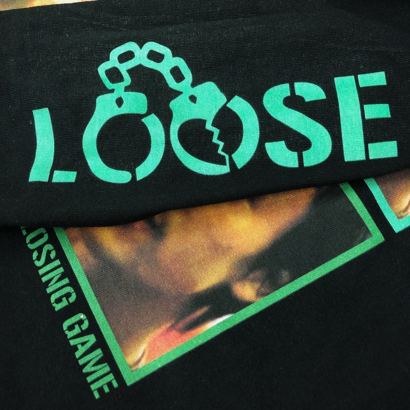 最近街头品牌 LOOSE 与电影《绿帽子》联名推出了一个全新的系列。系列以黑色与绿色为主打,带来了卫衣,T-shirt 以及帽款。本次系列在设计注入了电影中的经典场景,将廖凡的经典台词 “爱都不怕,还会怕死吗?” 印在了单品上。