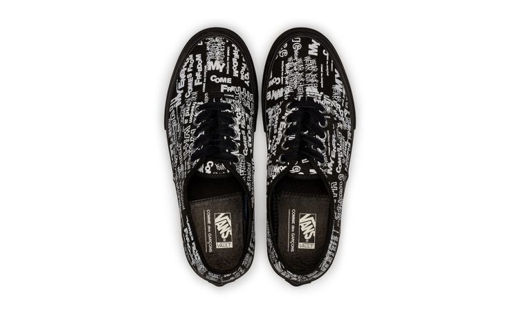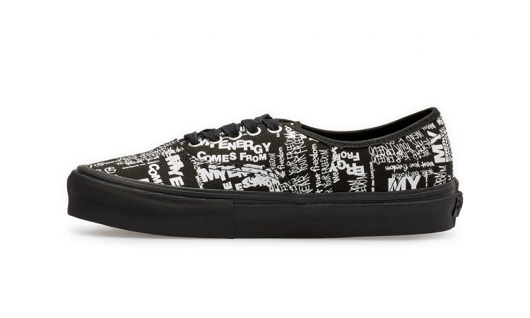 早前 COMME des GARÇONS 与 Vans 就曾发布过白色版本的涂鸦风联名鞋款,但那时候这款联名并没有太受欢迎。而最近,双方再次联手推出了一款全新的黑色版本 Authentic 联名鞋款。