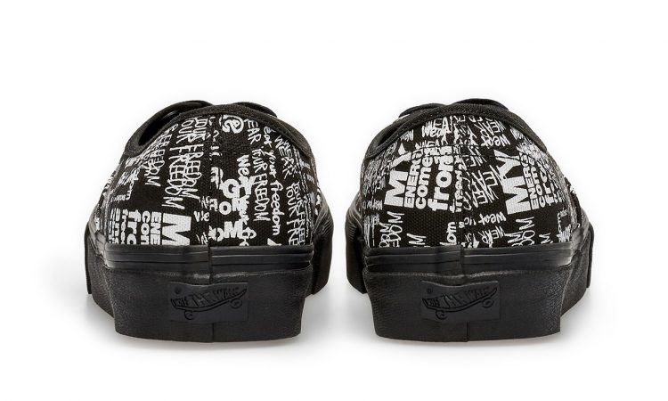 与白色版本相同的是这款黑色版本依旧以涂鸦方式将“my energy comes from freedom” 以及 “live free with strong will” 等标语注入到鞋面上,而黑色主打的鞋身相比白色版本又更为低调帅气。