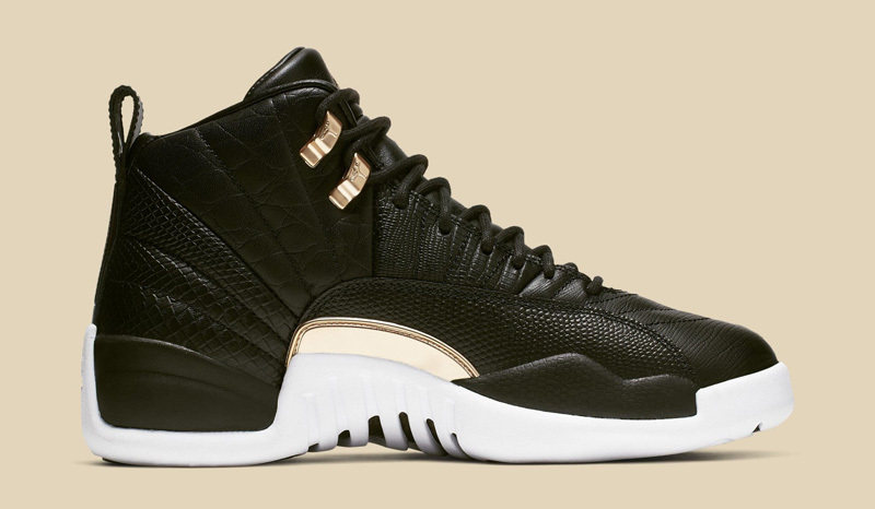 在前一阵Jordan Brand 曝光了一款全新版本的Air Jordan 12,以蛇纹和鳄鱼纹两种皮革纹理拼接呈现鞋面,展现出相当高级的质感。更为亮眼的部分则是鞋身的内衬也延续了鞋面的皮革材质,用料充足。在logo、鞋带扣、挡泥板等位置则用金色点缀,颇有“金扣”的扮相。虽然是女性规格发售,但是最大码却到44.5码,因此大家都可以选择入手。