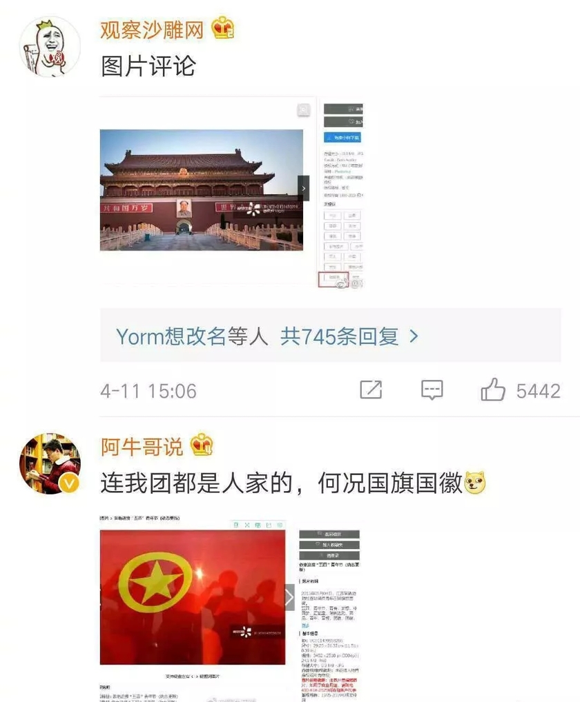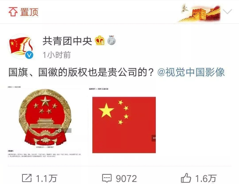 于是发现了视觉中国的各种神奇操作,国旗国徽版权归自己,各大公司自己的品牌logo都不属于自己,网友也是有评论说“合着什么都是你的,为什么不改名叫视觉韩国呢”(手动狗头)
