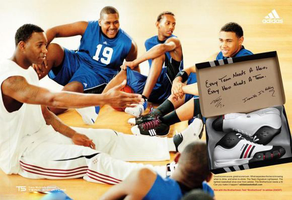 2007-08赛季,没有任何征兆,阿迪达斯突然取消了旗下所有球星的个人签名球鞋,推出了TS团队签名鞋取而代之,也就是用几名超级球星共同代言一款球鞋,(只是在logo等细节处有区别)“团队签名鞋”这样一个概念,算是对“It Takes 5IVE”的极端化。