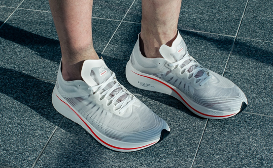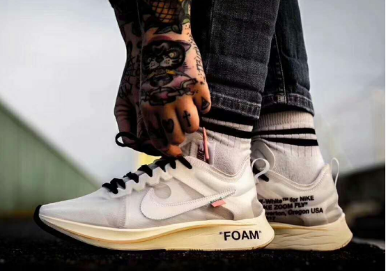 The Ten系列其实有两个分支,一个是解构,另一个则是重影,重影系列运用了大量透明材料。而Nike Zoom Fly SP 4% X Off White就是重影系列当中的鞋款,蝉翼鞋面的加入就是它的标志性特色,在潮流与未来感之间,Nike Zoom Fly SP 4% X Off White的设计拿捏得恰到好处。