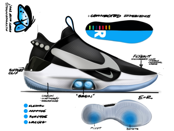 2019年,Nike发布Nike Adapt BB,这是Nike在Nike+后再度回归智能运动鞋领域的一个尝试,相比起有点鸡肋的Nike+数据监测系统,Nike Adapt BB可以说是真正把智能融入到实战当中去,Nike Adapt BB能根据每个人的不同的穿鞋习惯来自动适应脚型,达到最舒适的松紧程度,还能通过手机APP程序微调,无线充电功能以及可变色灯光的加入,让他的未来感更进一步!