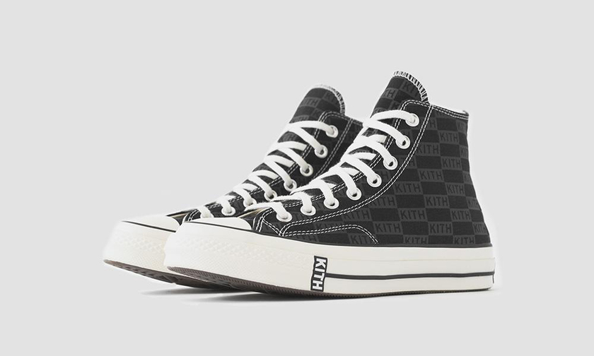 本次合作以 Converse 经典人气鞋型 Chuck Taylor 1970 为蓝本,带来黑色与白色两款配色。鞋面暗藏了 KITH 经典 logo 印花,展现低调奢华气质。中底处的 KITH logo则较为明显,彰显联名身份。