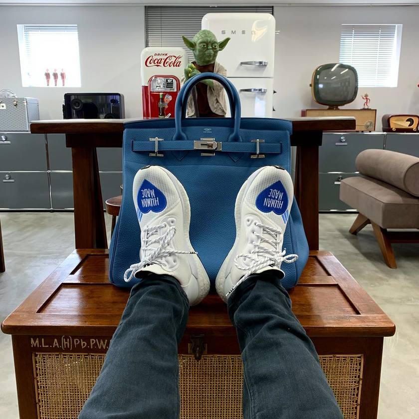 早前菲董上脚 HUMAN MADE x adidas Solar Hu Glide 曝光后,就有很多鞋迷爱上了这个联名。近日 NIGO:registered: 又在 Ins 上猝不及防晒出了另一个配色。有趣的是鞋款搭在了相同配色的爱马仕 Birkin 前。这是暗示这款联名是鞋中爱马仕?不过感兴趣的朋友大概只想知道,这鞋到底什么时候发啊~