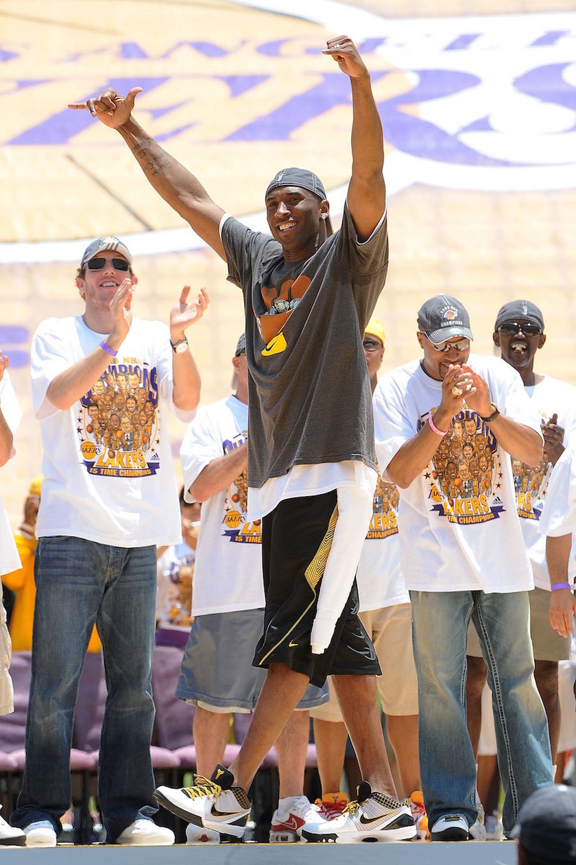 鞋身整体以白色为主,搭配黑色细节点缀,并辅以湖人黄搭配。科比在当年夺冠之后的游行盛典上也上脚了这双鞋款。据悉这款配色将定于5月24日正式发售,定价175美元,喜欢的朋友可要记好时间咯。