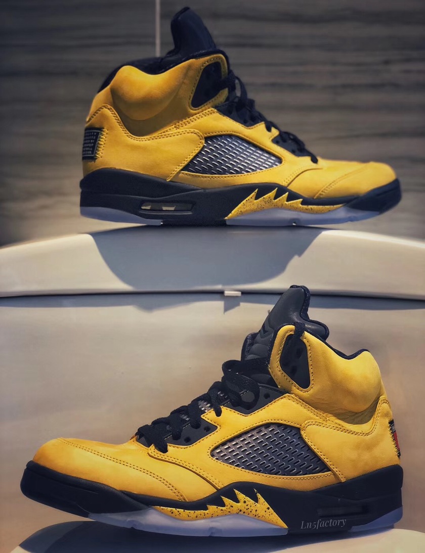 近日Jordan Brand为发布了一款Air Jordan 5的全新配色,以密歇根州为主题呈现。鞋身整体以活力四射的明黄色为主打造,另外配合海军蓝点缀鞋身的外底、内衬等各个部分,另外再搭配精美的蓝色水晶底。