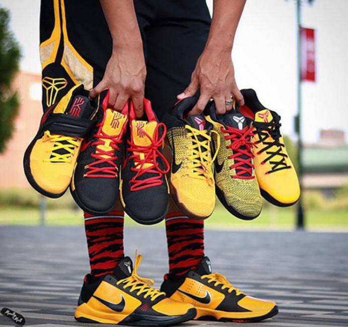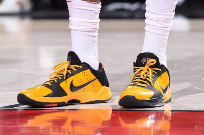 对于黑黄配色的球鞋,大家一般都会将其称之为“李小龙”配色,其实最早使用这种特别的配色的球鞋,科比系列可以算是始祖了。从Nike Zoom Kobe 5开始,Nike开始为它配上了抢眼的黑黄配色,并在鞋身的细节处以四道鲜红色的伤痕点缀,这就是李小龙配色的雏形。