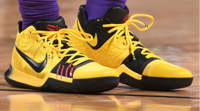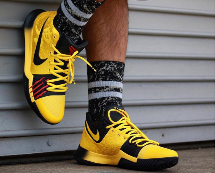 Nike Kyrie 3黑黄配色是一款“正统”的李小龙配色,除了标志性的黑黄外观,它还拥有李小龙配色专属的四道血痕,除了展示了对李小龙的敬意,Nike Kyrie 3的内侧还融入了蛇纹纹理,代表着曼巴精神的传承。