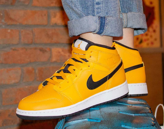 在Air Jordan 1风潮如此猛烈的今天,Air Jordan 1 Mid也不可避免地乘上了这股潮流,成为了众多球鞋粉丝争相上脚的热门鞋款,黑黄色的Air Jordan 1 Mid颇有当年Air Jordan 1“新欢旧爱”配色的风范,配色抢眼之余,还带有一点李小龙配色的感觉。
