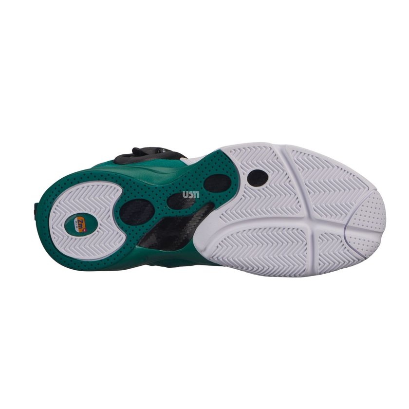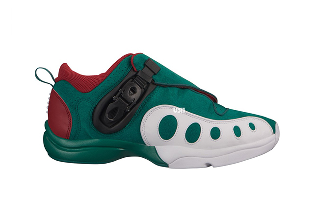 鞋身整体以墨绿色为主,用类似翻毛皮的材质呈现。酒红色的部分则使用织物网布打造。鞋头的皮革材质使用百搭的白色渲染。整体配色方案都和以前的西雅图超音速队的球衣相匹配,带来满满的复古气息。如果喜欢OG鞋型和配色的球鞋玩家这款一定不可错过。