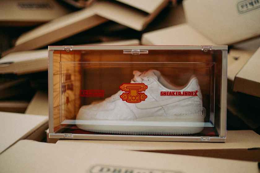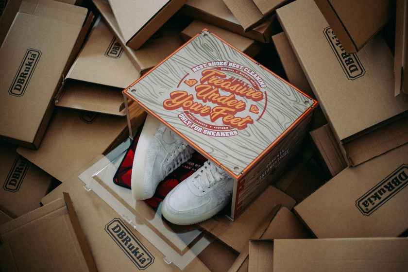 get周年庆限量鞋盒,仿木质纹理,锁扣形式,内置鞋毯。印制SNEAKERINDEX字样彰显get专属身份,Treasure under your feet的字样结合钻石熠熠闪光,彰显着球鞋带来的物质和精神财富~
