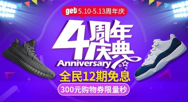 4岁啦,get又陪伴大家走过一年!在这一年里get致力于用精彩的潮流资讯充实大家的生活,并且带来最到位的鉴定服务和最帅气的潮流服饰和鞋款,非常感谢大家的支持。