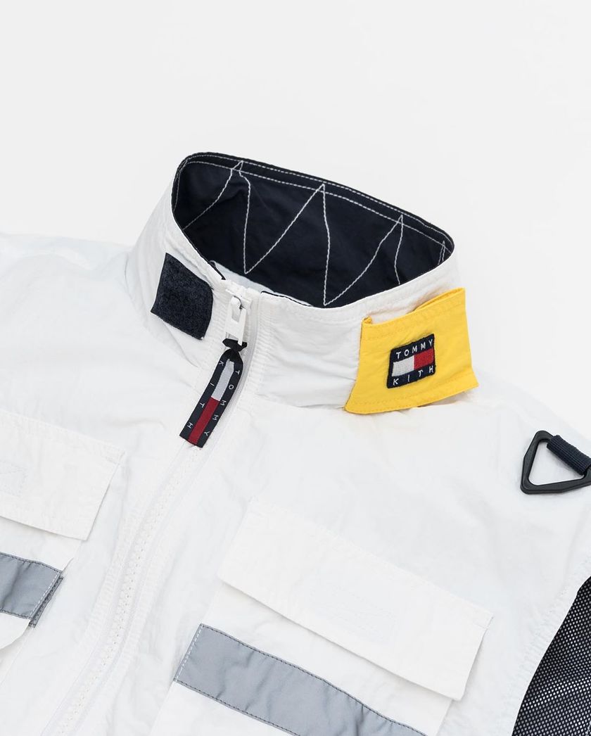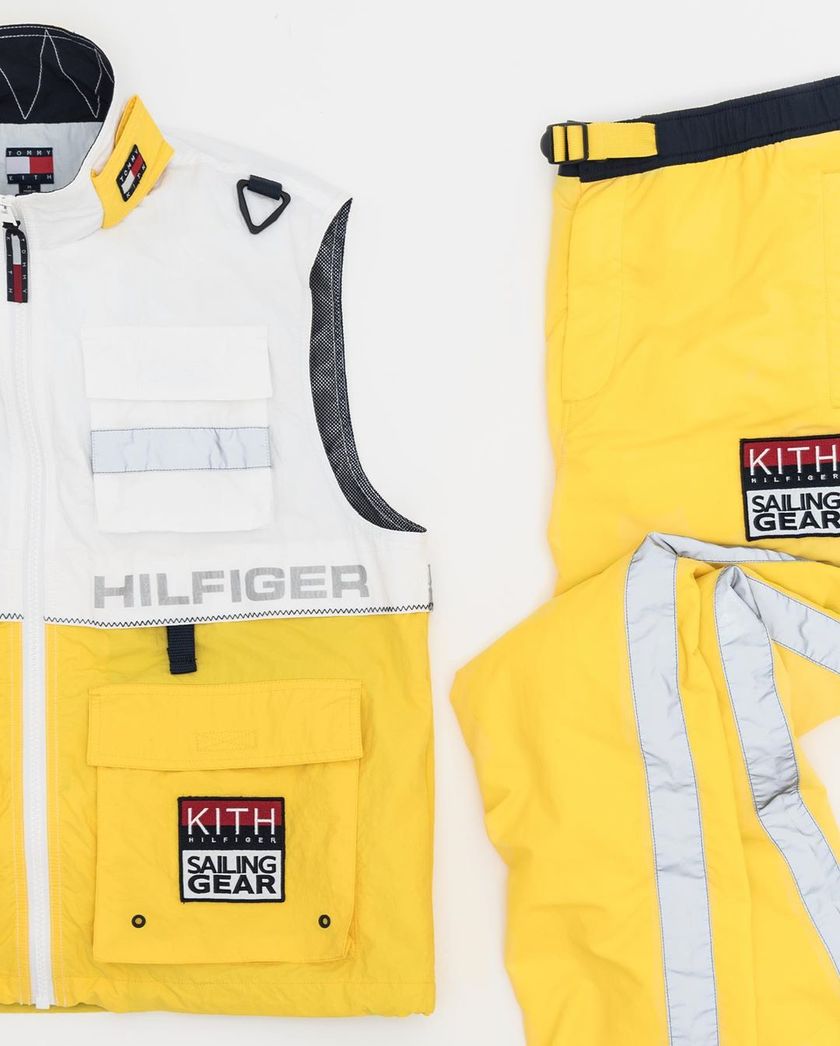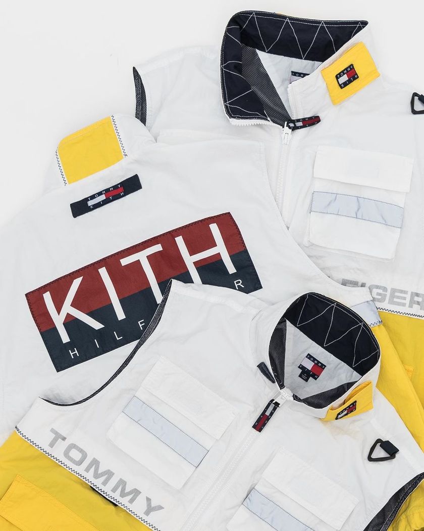 继此前 KITH x Tommy Hilfiger 联名鞋款亮相以后,双方联名系列迎来了更多单品的曝光。此番系列包括马甲、长裤、短裤以及一件长袖 T-Shirt。在设计上与鞋款一样以复古风为主打,采用藏蓝、黄、白以及银色色调装饰,并注入了Logo、复古标签以及各国国旗等元素,质感与气质都不凡。目前该系列尚未释出发售信息,喜欢的朋友可以留意一下。