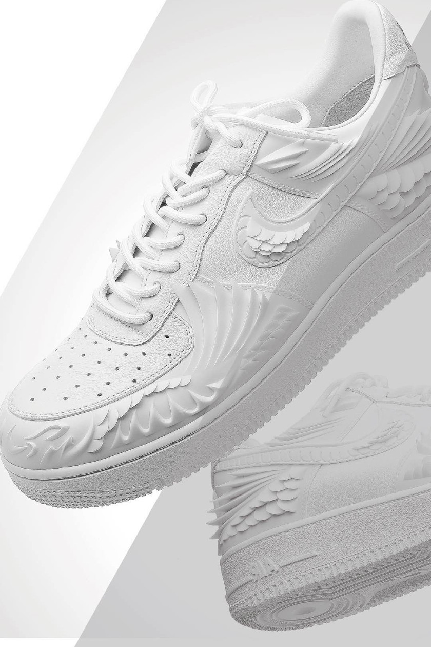 这款全新的锦鲤 Air Force 1以纯白鞋面呈现,通过3D打印技术完成,纯手工皮雕艺术呈现的立体锦鲤纹理让人叹为观止。以后可能不用转锦鲤求好运了,直接上脚这款配色或者转发这双 AF 1 就应该会有好运了吧~