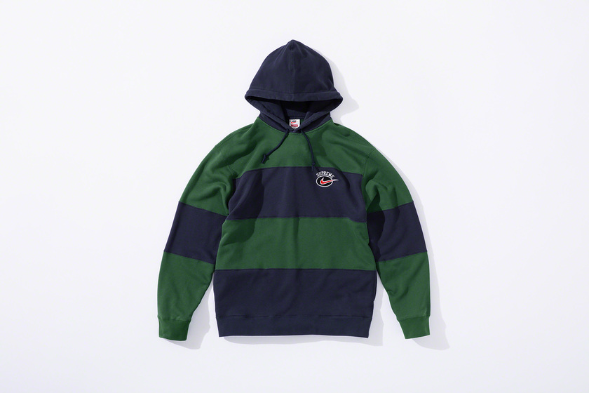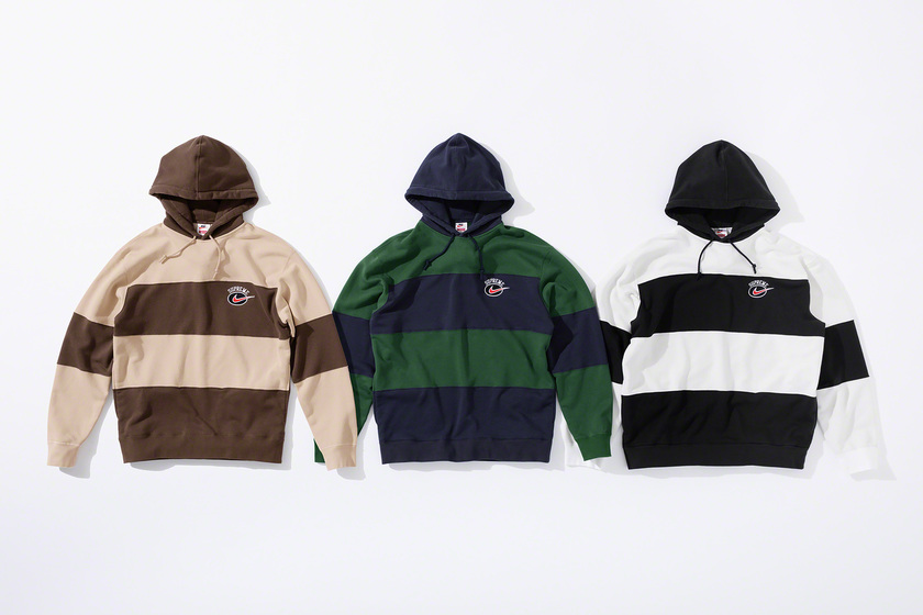本次联名系列采用了醒目的撞色设计,条纹元素与双方标志性 logo 的加入让这个系列充满了复古感,说是 90 年代的联名大家也会相信。本次的单品也非常丰富,连帽运动夹克、运动裤、连帽条纹卫衣、长裤、针织衫以及腰包等都有多款配色选择。
