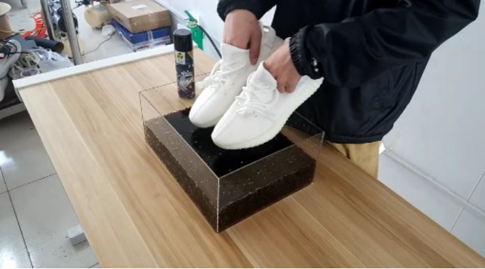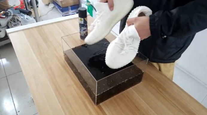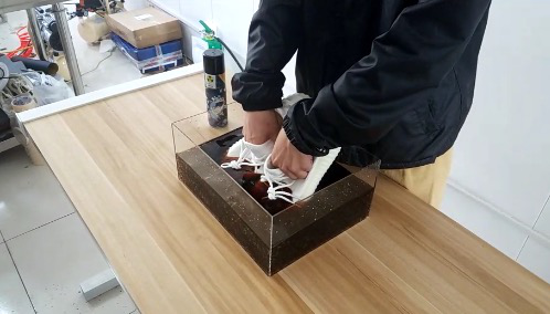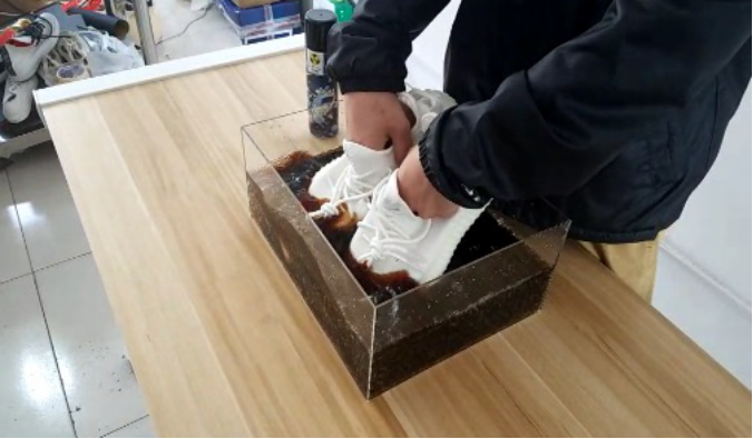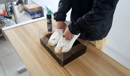 将鞋子清洗干净,为了控制实验尽可能的准确,以防表面的灰尘和污渍影响实验效果。