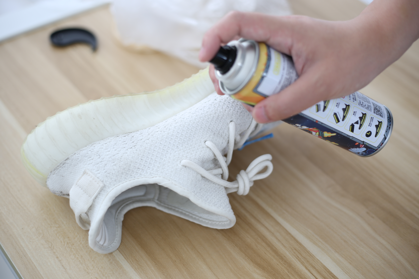 回家之后,我就开始搜寻各种防水神器:雨鞋,鞋套……后来,意外地看到了一瓶球鞋专用防水喷雾。抱着试试的心情入手了。没想到意外的发现好用。