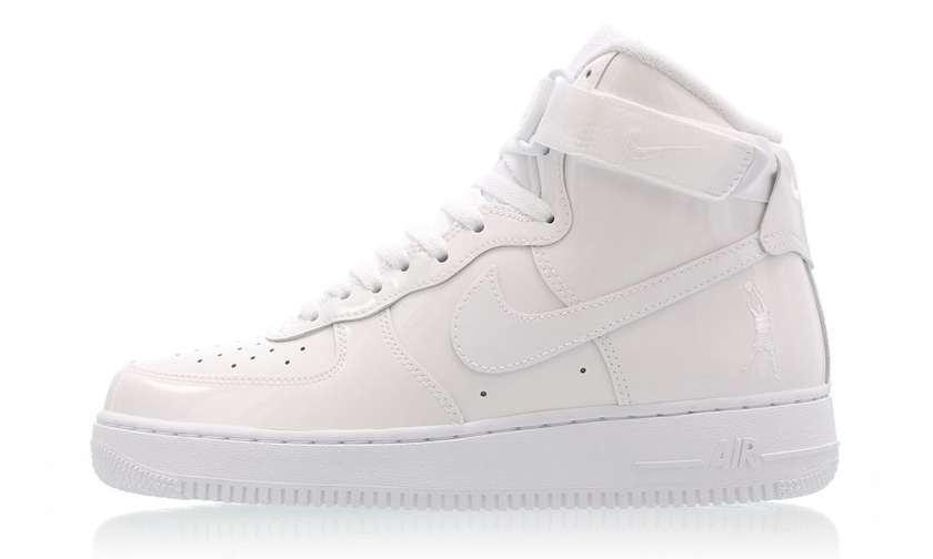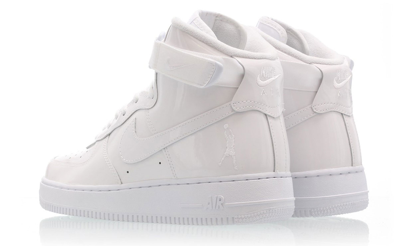 这款全新的 Air Force 1 High 选择经典的纯白配色,全漆皮材质散发着迷人的光泽。鞋跟处拉希德·华莱士经典跳投姿势以刺绣形式呈现,精致程度令人惊叹。