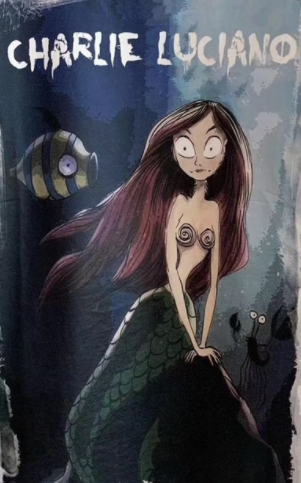 明星同款Charlie Luciano 春夏新款美人鱼插画Tee 黑色