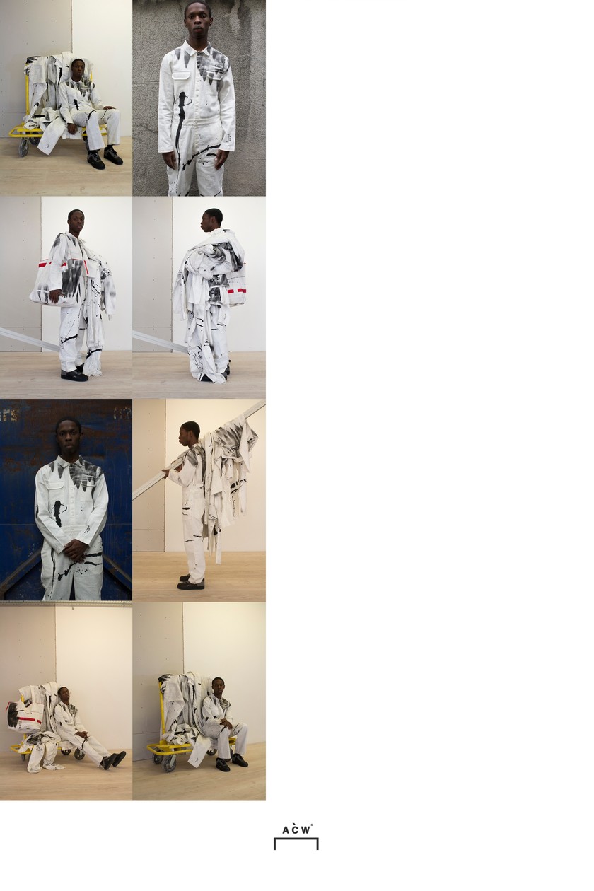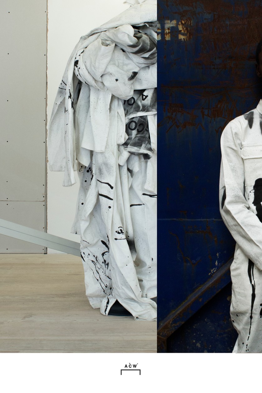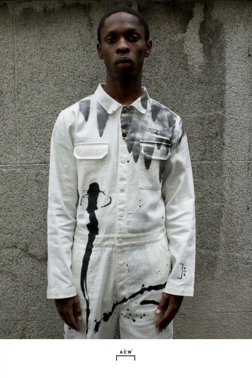 飞行服以白色为主基调,辅以黑色泼墨元素渲染,艺术气息满满。袖口 A-COLD-WALL* logo 点明了单品的联名身份。