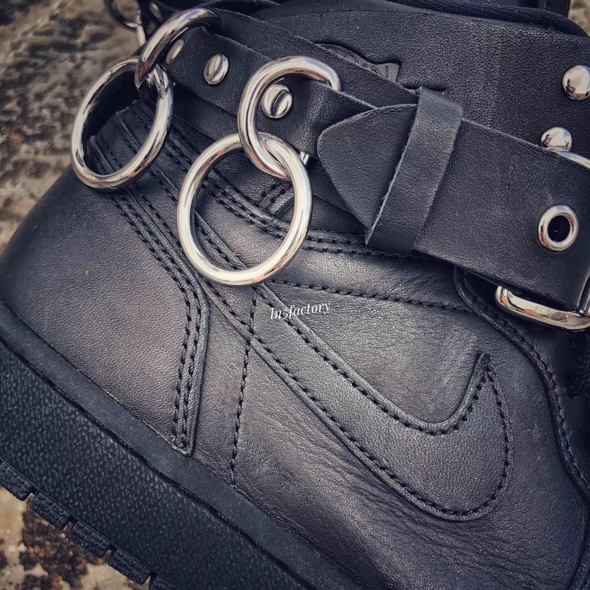鞋身采用了超高鞋舌设计,相当具有辨识度。鞋帮处采用超大环扣铆钉设计,展现摩托车靴式的美学魅力。这款鞋将登陆今年秋冬季的巴黎时装周展台,目前还没有更多的具体发售信息透露,我们将持续关注。