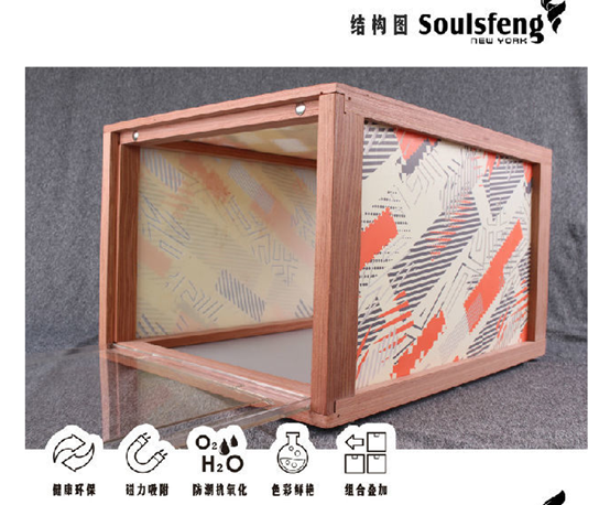 然后再让我们看看这款鞋盒的细节部分,一个鞋盒光有良好的性能还不够,颜值的重要性更不可忽视。亚克力实木鞋盒配合实木材质框架在鞋盒四周的PP板使用了色彩鲜艳、设计时尚感强的线条纹理装饰,摆放在家中也能成为一道靓丽的风景线为设计加分。