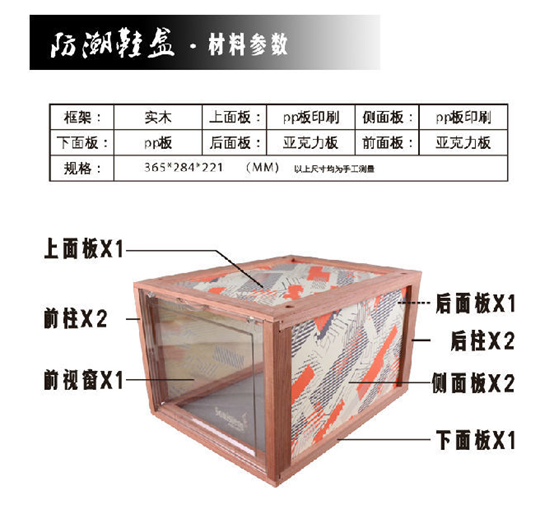 而除了使用木质结构之外,鞋盒的其它部分也“因地制宜”地使用了不同材质的板材呈现整个鞋盒。在盒身四周采用了质量优良的PP板,它质量轻同时又有着更强的坚硬程度,抗冲击性更好。因此在搬动鞋盒的时候,你并不会觉得难以搬动,并且也不用担心磕碰问题。