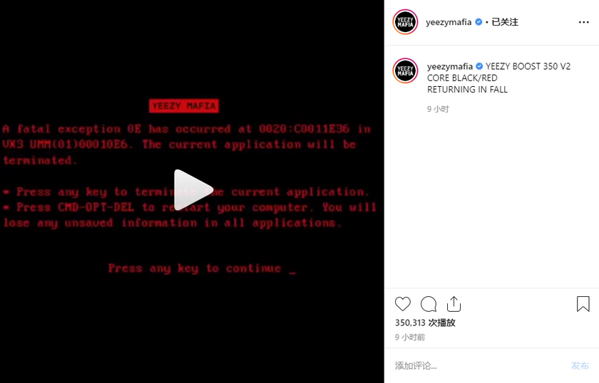 在昨天,知名球鞋爆料帐号yeezymafia发出一则消息称,红字版本的Yeezy 350 V2将在今年迎来复刻。这则消息一经传出也是让不少Yeezy的爱好者欢呼。