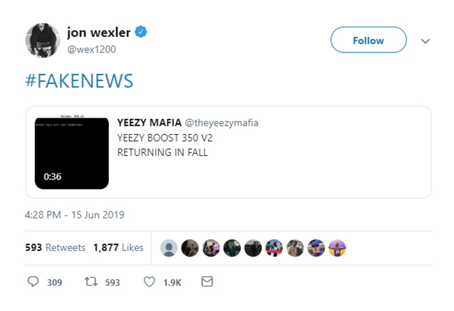 但是很快地,adidas全球市场总监Jon Wexler就在转发了这条消息并称这是一条假消息,可以说是让大家空欢喜一场了。