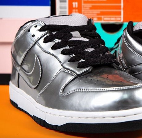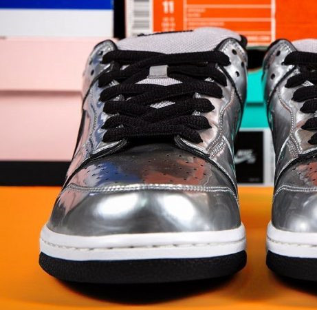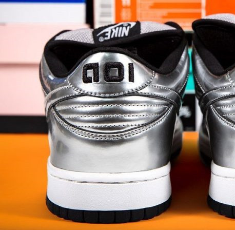 而最近,一款未市售版De La Soul x Nike SB sample 鞋款在网上曝光了。以 Dunk SB Low 为蓝本,这款联名采用液态银包裹鞋身,后跟以刺绣形式呈现的 “AOI” 字样点明了配色的灵感来源于De La Soul 的专辑《AOI: Bionix》。