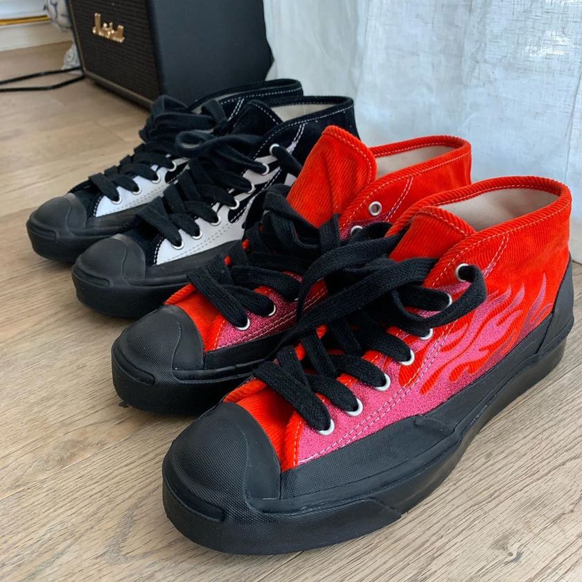 鞋侧的火焰图案具有超强的视觉冲击,后跟处的五角星极具辨识度。这次还有黑色和红色两款配色可以选择,虽然还未释出发售日期,但附文中的 “EVERYTING COMING SOON” 字样显示这次的联名会在不久后亮相,喜欢的朋友不妨关注一下~