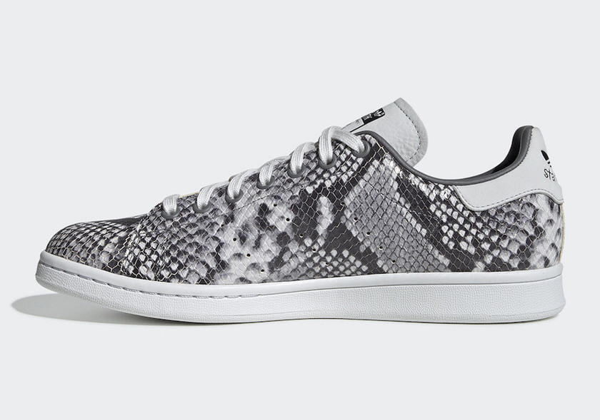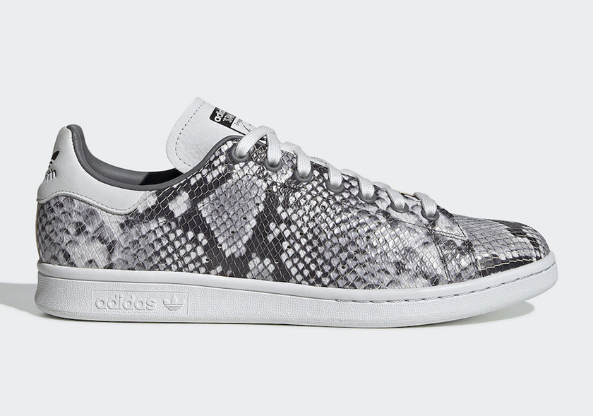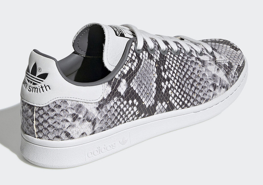 这款全新的配色除了保留了 Stan Smith 经典的简练造型外,还注入今年大火的蛇纹元素。深浅不一的灰色蛇纹鞋面搭配白色鞋底不仅气质清爽,还有着独特的艺术感。整体设计相当出彩,相信上脚也会有不俗的表现。