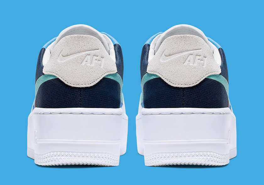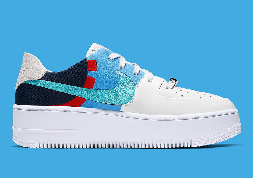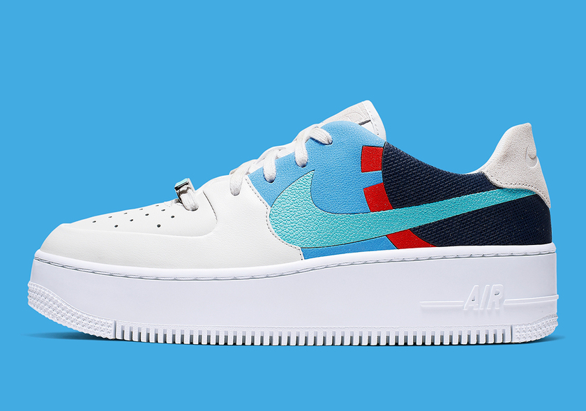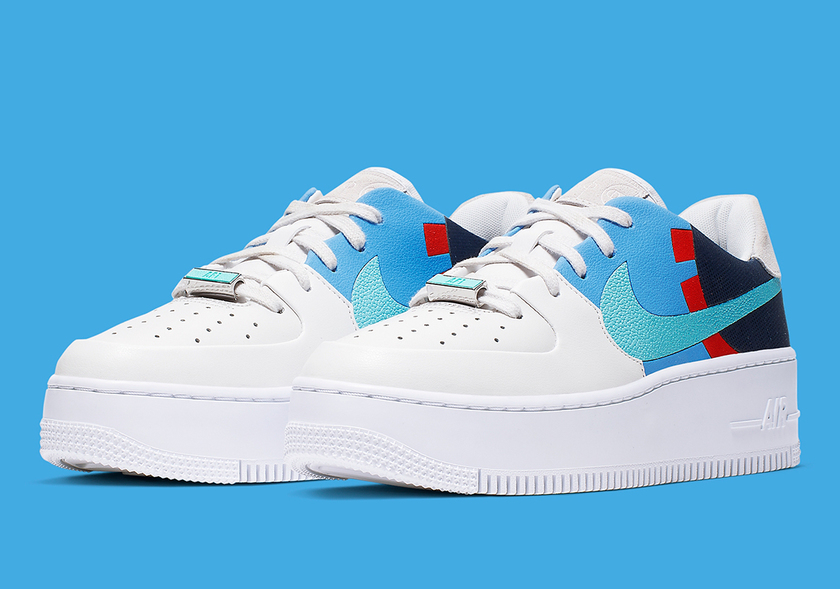 这双 Nike Air Force 1 Sage 延续了 Nike Air Force 1 的外观轮廓,区别就是鞋底加厚了些许,看上去更具潮流感。而这款全新配色又让这双鞋潮上加潮,大面积白色皮革搭配后跟蓝色、红色与深蓝色细节,抢眼度爆棚。蒂芙尼蓝 Swoosh 与灰色麂皮后跟也为鞋款增加了层次感。