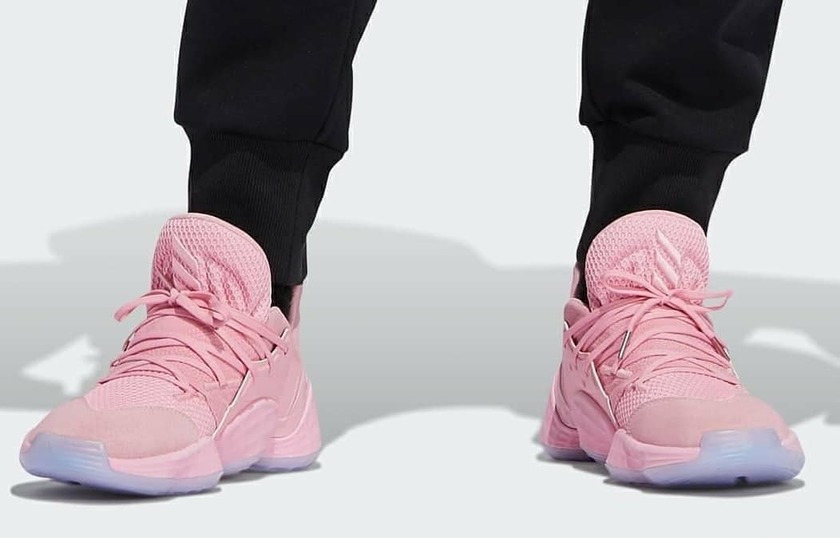 可以看到这款全新的鞋款采用的是低帮造型,纯粉色鞋身骚气满满,搭配冰蓝色半透明大底,清新感十足。鞋舌处的 logo 和后跟的 H logo 极具辨识度。