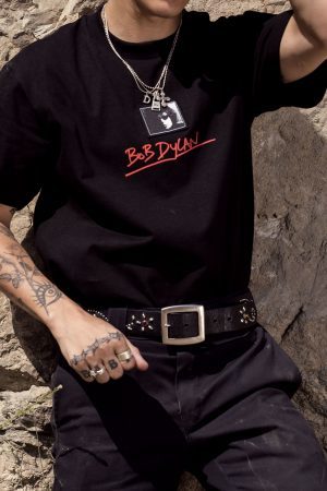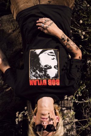 系列主题是出生于1941年的美国殿堂级摇滚、民谣艺术家 Bob Dylan ,他也是第一位获得诺贝尔文学奖的作曲家。此番双方的联名合作便以 Dylan 的经典肖像为主打设计,《Like a Rolling Stone》中的手写歌词印花也被注入其中,辨识度极强。