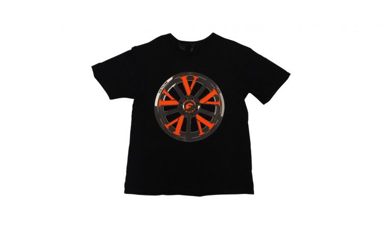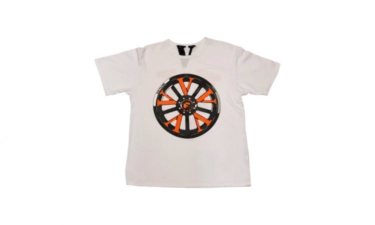 世界著名珠宝公司 FRED 的分支品牌 Forgiato 向来专注于打造精致的汽车轮毂产品,品牌去年曾与 VLONE 联手推出了一款特别的轮毂,VLONE 主理人 A$AP Bari 对这款联名可谓是青睐有加,将其用在了自己的爱车上。而此番,VLONE 将这一人气设计转变成酷酷的图案印到了 T 恤。
