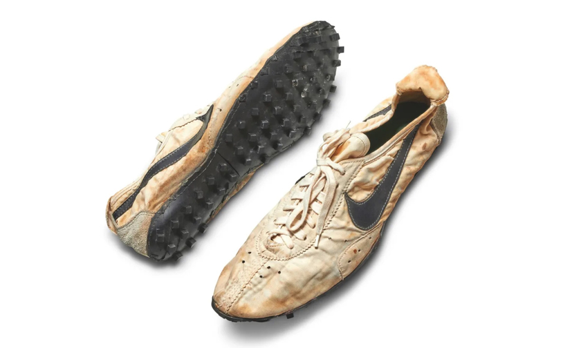 这双鞋的来头当然也不小,它是第一代登月鞋,是完全的纯手工制作,也是当年12双鞋中唯一一双没有被穿过的。就像宇航员登月留下印记一样,穿它走路也会在地上留下痕迹。它的轻质和抓地力堪称一绝,算是Nike的一个重大创新。不过虽然这双鞋的历史价值非常大,但花费 300 万元买一双鞋真的值得吗?