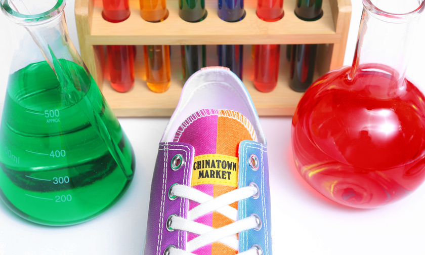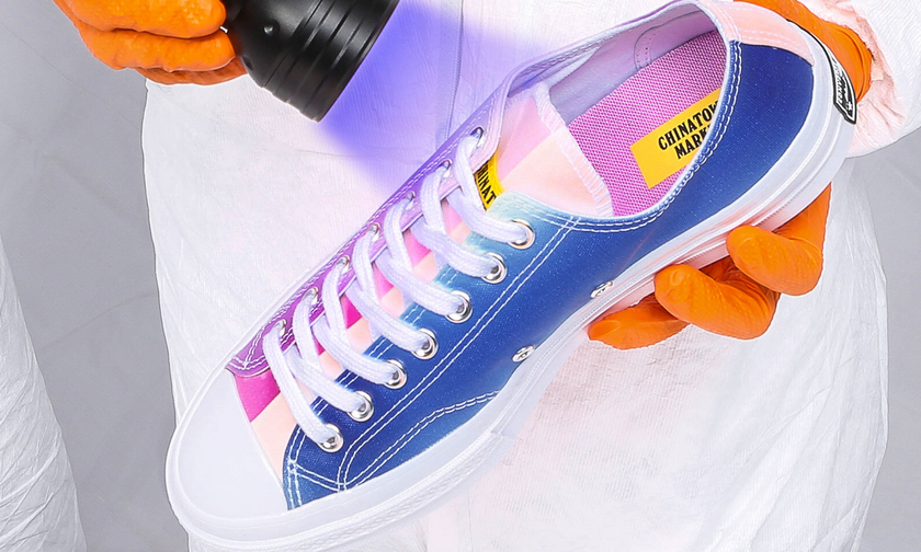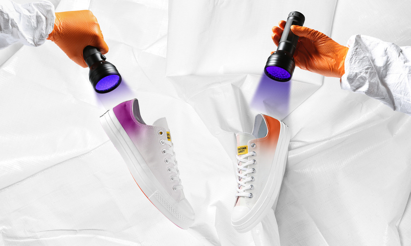 系列鞋款的鞋面采用了特殊感光帆布,会随着紫外线光照时间、光照程度的不同呈现不一样的色彩,可谓梦幻至极。而鞋舌上的 Chinatown Market logo 则极具辨识度,彰显了鞋款身份。