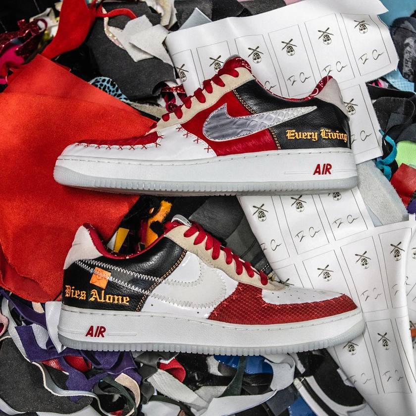 红白黑配色方案,解构设计,以及 X 字形缝线的注入,经典又玩味。特殊纹理及透明蝉翼 Swoosh ,轻薄又酷炫,搭配 “Every Living” 与 “Dies Alone” 的哥特式文字,奢华感顿显。