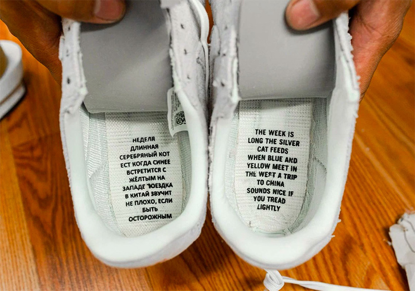 此外,后跟位置也隐藏了《怪奇物语》 logo ,鞋垫下方俄罗斯文和英文的秘密文字,直击本次联名主题。
