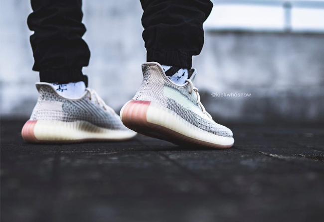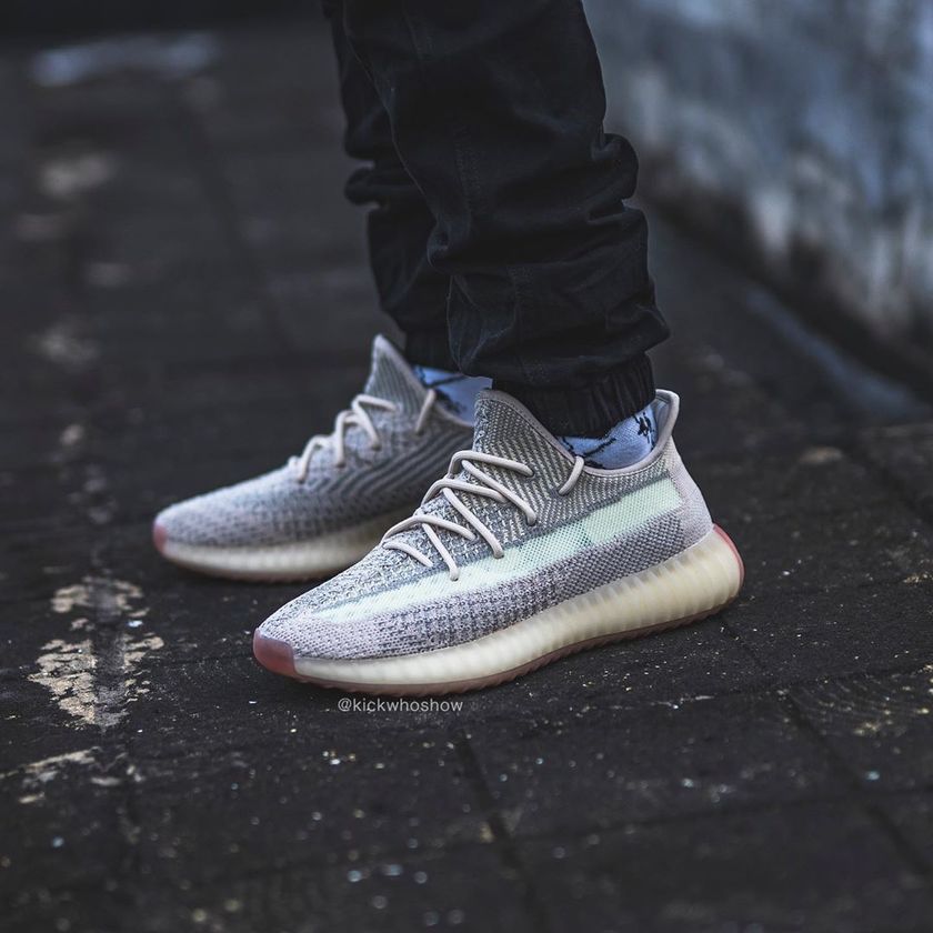 Yeezy 350 V2 经过前段时间的密集发售后,会沉寂一段时间。接下来备受关注的两款拼接设计配色都要等到 9 月份,按照“惯例”,除了常规版本以外,这两款配色也有满天星版本。此番,满天星 Yeezy 350 V2 "Citrin"上脚图就释出了。