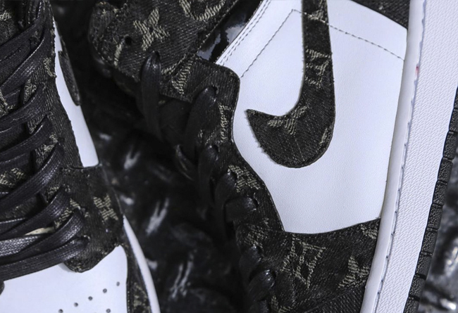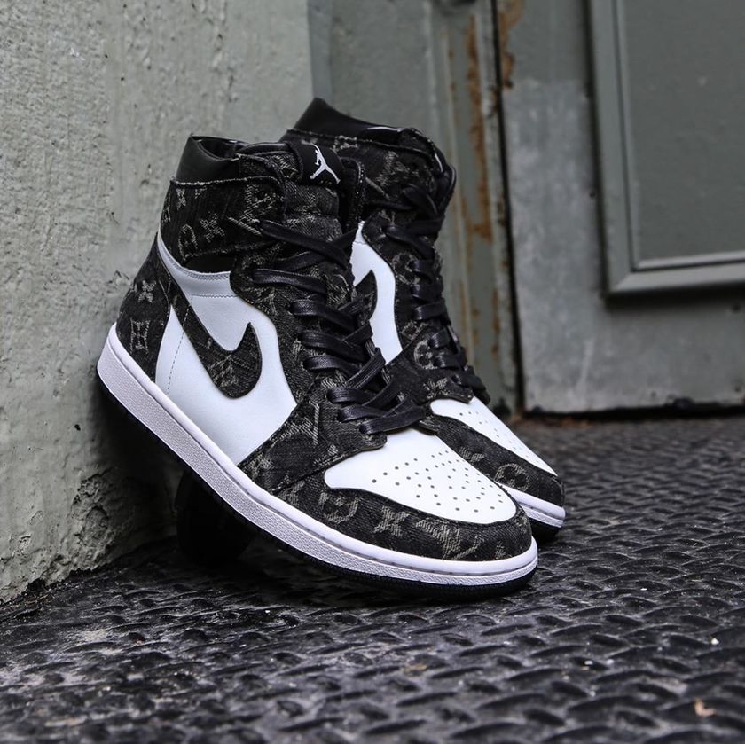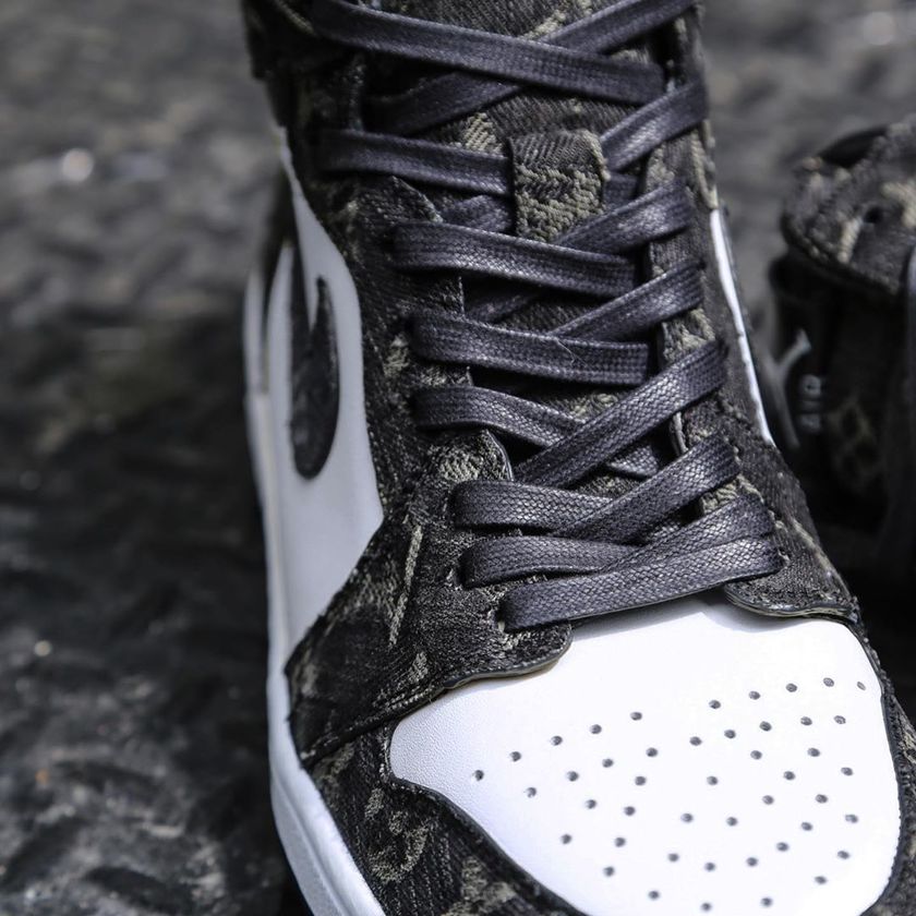 这款定制版 AJ 1 鞋面采用的是LV牛仔布材质,极具辨识度的 logo 和精致的纹理,显露出独特的奢华气质。搭配大面积白色皮革,就像是艺术作品中恰到好处的留白,让人无限遐想。