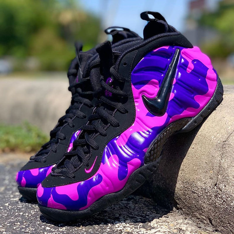 Nike Air Foamposite Pro 紫迷彩的发售消息曝光已久,在近日也终于确定了发售日期并又放出一组实物美图,不知道大家有没有心动呢。迷彩元素在近两年潮流趋势中一直颇受欢迎,从服饰到鞋款都有着相当大范围的设计运用。