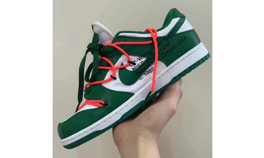 最早由 Virgil Abloh 曝光的 Futura x Off-White x Nike SB Dunk Low 三方联名鞋款,可以说是今年最神秘的也最受关注的联名之一了。而除了蓝色和红色版本以外,网上又曝出了前所未见的绿色版本。