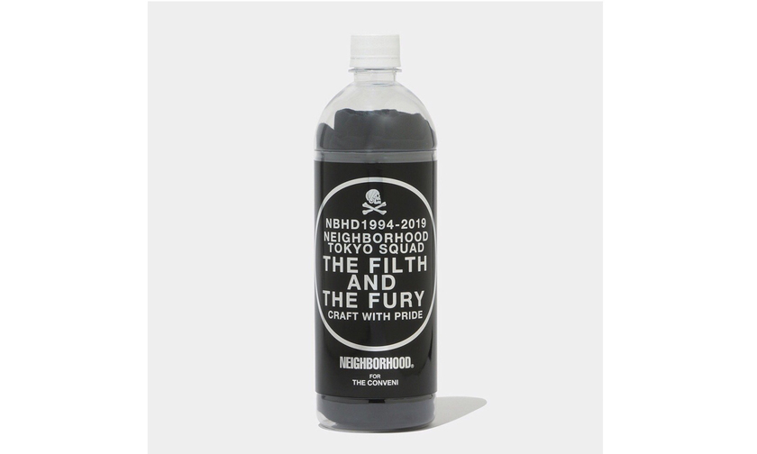 由藤原浩打造的 The Conveni 店铺此番联手日本老牌街头单位 NEIGHBORHOOD 推出了全新的联名系列。系列以黑白两色为主打,搭配银色和金色烫金字样的设计,以及背后的巨大标语设计,视觉效果极为吸睛。